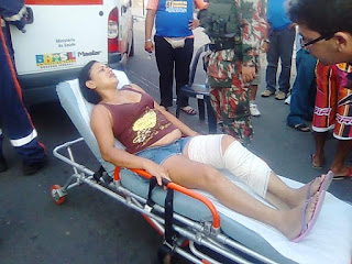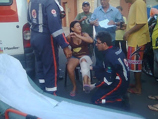 Com a queda um dos amortecedores da moto se desprendeu. Hugneide teve uma fratura na perna esquerda e foi socorrida por uma equipe do SAMU para o HRTM, policiais da CIPAM passava pelo local e fez os primeiros atendimentos até a chegada dos socorristas do SAMU.
